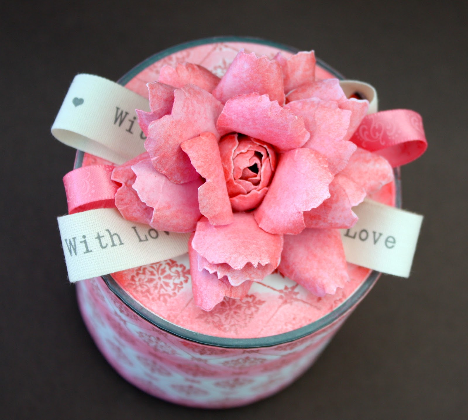 To finish off the box I used some ribbon from a local gift wrapping shop and the rose was then glued on top.